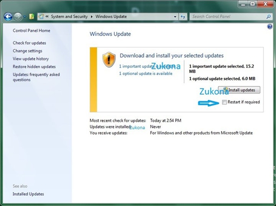 這張截圖來自于Windows 8 Build 6.2.7930.0.winmain_win8m2.110217-1825,在Windows Update中安裝重要更新之前,你還可以選擇“Restart if required”(如有需要立即重啟)。