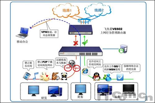 針對以上用戶的共性需求,在成熟可靠的防火墻寬帶路由器的架構(gòu)上,飛魚星科技推出了一款專為30臺以內(nèi)規(guī)模的中小企業(yè)量身定制的上網(wǎng)行為管理路由器——VE602,它具備“上網(wǎng)行為管理”、“多WAN路由器”以及VPN網(wǎng)關(guān)等多重功能的新一代硬件網(wǎng)絡(luò)接入設(shè)備,具有企業(yè)常用的上網(wǎng)行為管理、多WAN接入、流量控制、VPN等功能。該款設(shè)備需吸引人的地方是其價格,僅398元,完全是SOHO級路由器的價格,不僅提高辦公效率還可為企業(yè)節(jié)約一大筆開支,為中小企業(yè)提供極具性價比的一體化整體解決方案。