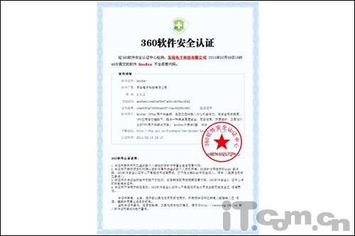 圖:QnoKey 軟件360安全認證證書