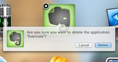 而在最新版本的Mac OS X中,軟件的刪除機制也向iOS看齊。用戶只需要點擊并按住啟動面板中的某個軟件圖標,所有圖標就會像iOS一樣抖動起來。此時用戶就可以點擊圖標左上角出現的叉號,確認后該軟件即被徹底刪除。