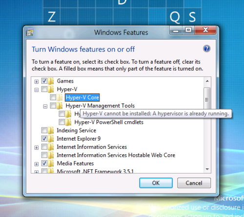 Windows 8最新版的一張截圖揭示了新版帶來的新功能:Hyper-V 3.0技術和新的虛擬硬盤格式VHDX,新的技術允許更大的虛擬磁盤數據,最大容量可以達到16TB,并且微軟還在新版Hyper-V虛擬化技術中提供了4核心以上的計算支持。以下是圖像: