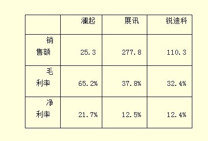 銳迪科是國(guó)內(nèi)芯片設(shè)計(jì)公司中少有的技術(shù)全面、產(chǎn)品廣泛的公司。產(chǎn)品線布局之寬在中國(guó)公司中絕對(duì)是鳳毛麟角,從FM,PA,Tuner,RF,藍(lán)牙到基帶可以說(shuō)“無(wú)所不有”;而針對(duì)的市場(chǎng)則是機(jī)頂盒、電視機(jī)、手機(jī)也是“無(wú)所不在”。并且在擁有了足夠多的產(chǎn)品之后,在供應(yīng)商面前的議價(jià)能力大大加強(qiáng),反過(guò)來(lái)進(jìn)一步保證了產(chǎn)品在價(jià)格戰(zhàn)中的優(yōu)勢(shì)。