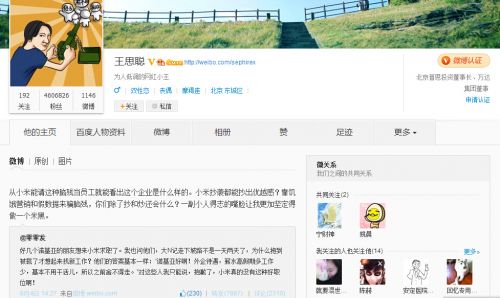 8月5日消息,繼王思聰前段時間在微博上掀起的“京東電腦桌”事件之后,這位地產巨鱷之子便開啟了網絡親民路線,并且有著馳騁互聯網領域的架勢。今日,王思聰又在其微博中公開對小米公司做出評論,并表示要“更加堅定得做一個米黑”。