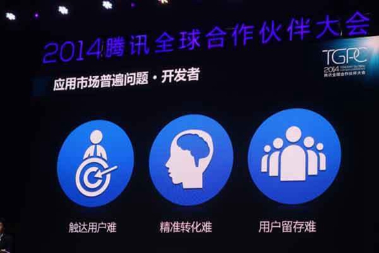 其一、騰訊社交網(wǎng)絡(luò)事業(yè)群副總裁林松濤表示,移動(dòng)互聯(lián)網(wǎng)上如何分發(fā)用戶,目前還是一個(gè)現(xiàn)實(shí)瓶頸。應(yīng)用推廣成本越來越高,用戶觸達(dá)越來越難,留存越來越低,開發(fā)者在這個(gè)市場(chǎng)上同樣面臨越來越大的困擾,60%分發(fā)量集中在頭部應(yīng)用;
