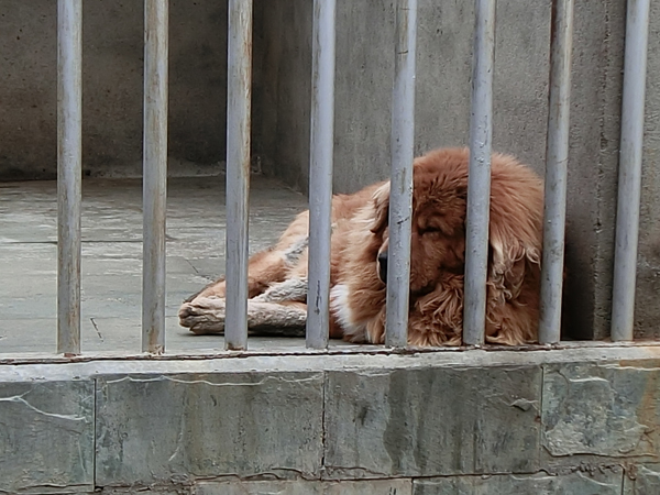 匆匆吃過9點鐘的午飯,繼續上路,在中午11點半趕到黃龍景區休息點,關著很多藏獒供游客參觀,