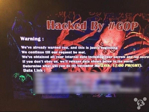 自稱 #GOP 的黑客同時恫嚇索尼只要滿足他們的要求,就會立刻停止攻擊,如果索尼在 11 月 24 日晚上 11 點前不滿足其要求,他們會將大量索尼的秘密數據以及未公布的電影資料公之于眾。