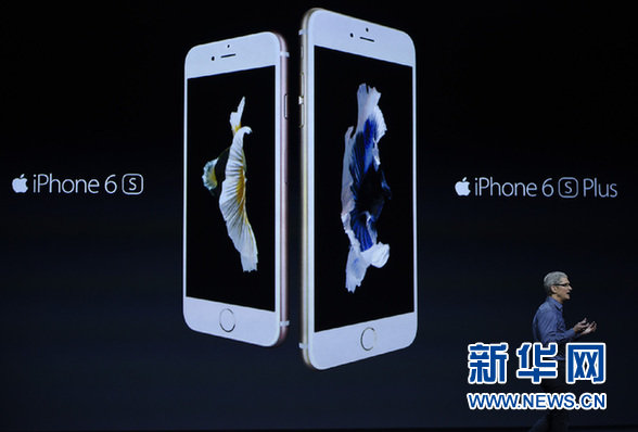 9月9日,在美國加利福尼亞州舊金山,蘋果公司首席執行官蒂姆·庫克在新品發布會上介紹iPhone 6s和iPhone 6s Plus。