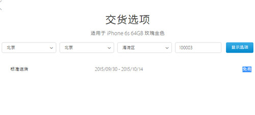 玫瑰金64G版iPhone 6S線上購買的送貨時間(TechWeb配圖)
