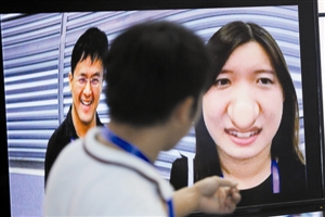 昨日,會展中心,智能人臉識別屏幕帶來無限樂趣。深圳商報記者 肖兵峰攝