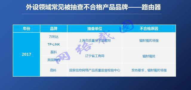 據最新一份報告《2018年度3·15數碼產品質量關注度報告》,指出國內最受歡迎的路由器不合格產品如下。